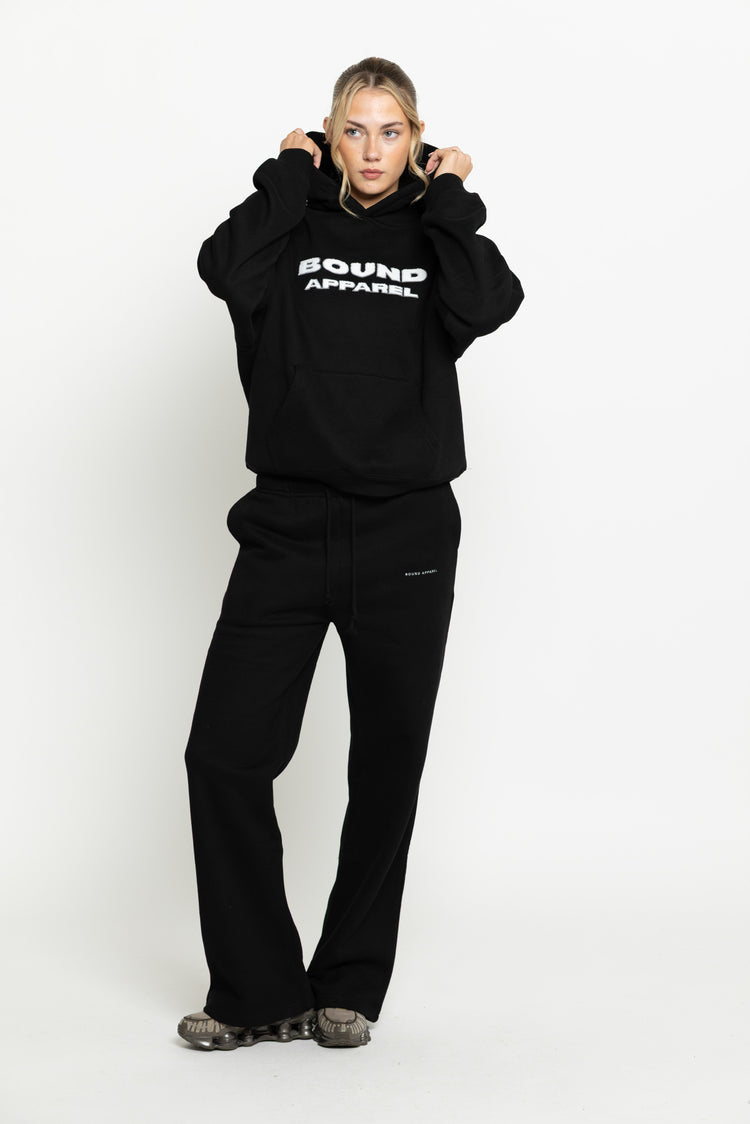 Introducing the Ultimate Black Track Pants. Perfect for any occasion and made with luxurious, high-quality materials. Soft, comfortable, and oversized, these Track Pants are going to be your new go-to.