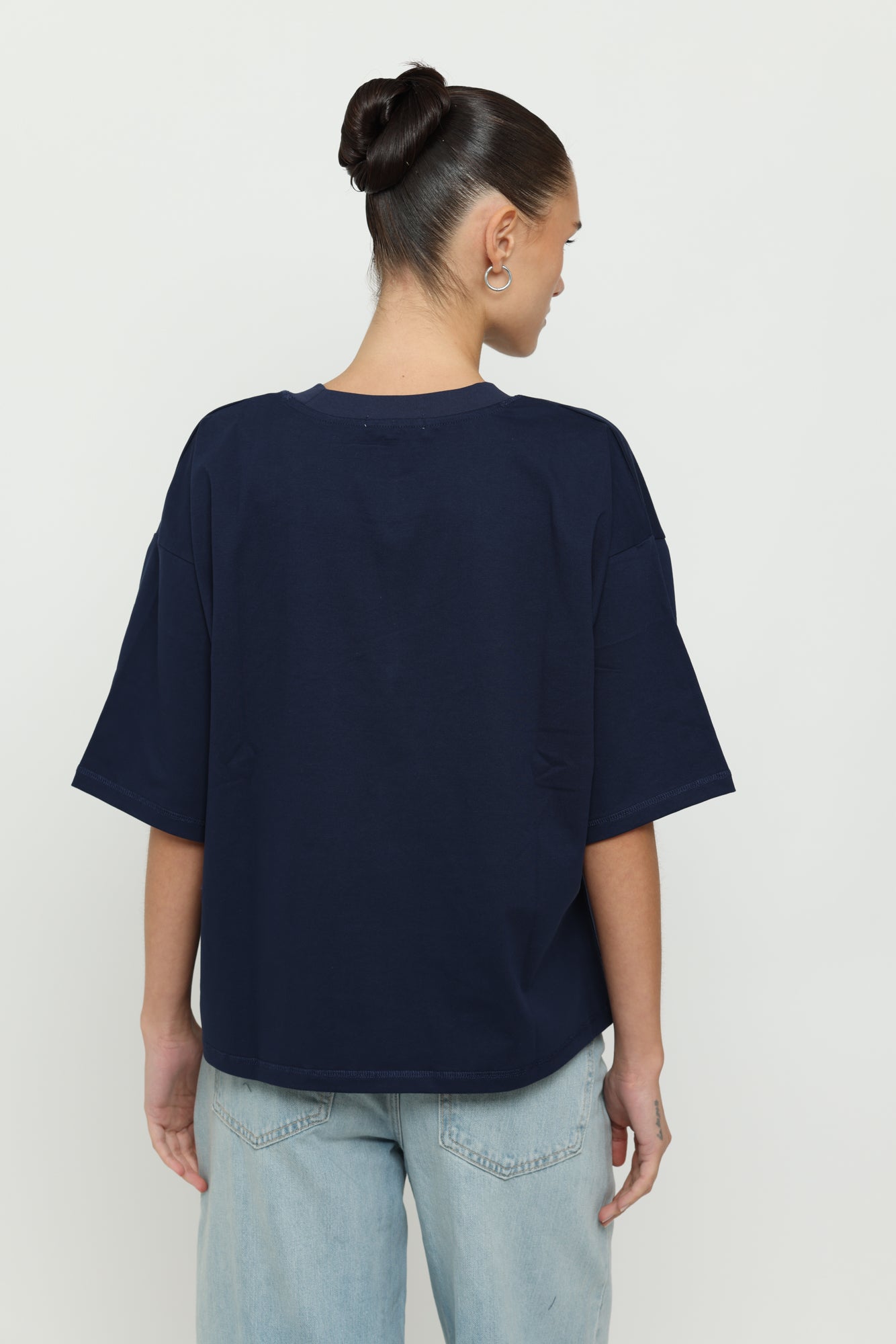 This laid-back boxy cropped tee features a generous oversized silhouette with dropped shoulders and longer sleeves. Perfect for effortless, comfortable style that works with everything in your wardrobe.