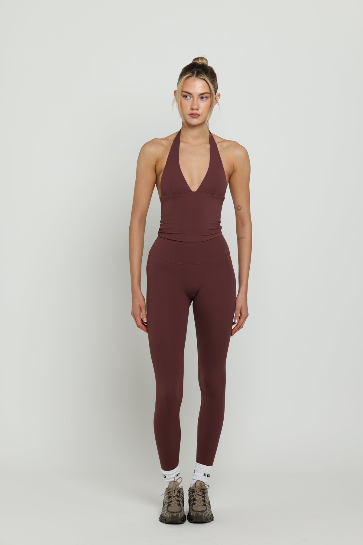 Featuring a V-neckline and halter detail, our halter tank is the perfect everyday item. With padding and support around the bust and a sleek open back she’s the perfect tank for everyone.